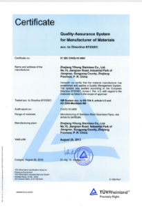 公司嚴(yán)格按ISO9001:2015《質(zhì)量管理體系—要求》、ISO14001:2015《環(huán)境管理體系 要求及使用指南》、ISO 45001:2018《職業(yè)健康管理體系 要求及使用指南》和TSG 07—2019《特種設(shè)備生產(chǎn)和充裝單位許可規(guī)則》,建立完善的管理體系。公司擁有國內(nèi)較大的12000KN冷拔機(jī)組和先進(jìn)的全溫控不銹鋼固溶退火爐等生產(chǎn)設(shè)備,同時具有ET16-159渦流探傷儀、UT16-159超聲波探傷儀、UT159-830超聲波探傷儀、H159-630水壓試驗(yàn)機(jī)、WAD—600液壓材料試驗(yàn)機(jī)、4XB電腦金相顯微鏡、JQ—300沖擊試驗(yàn)機(jī)、HBRVU—187.5硬度計、島津光譜儀、化學(xué)分析儀、晶間腐蝕試驗(yàn)等完善的檢測設(shè)備。